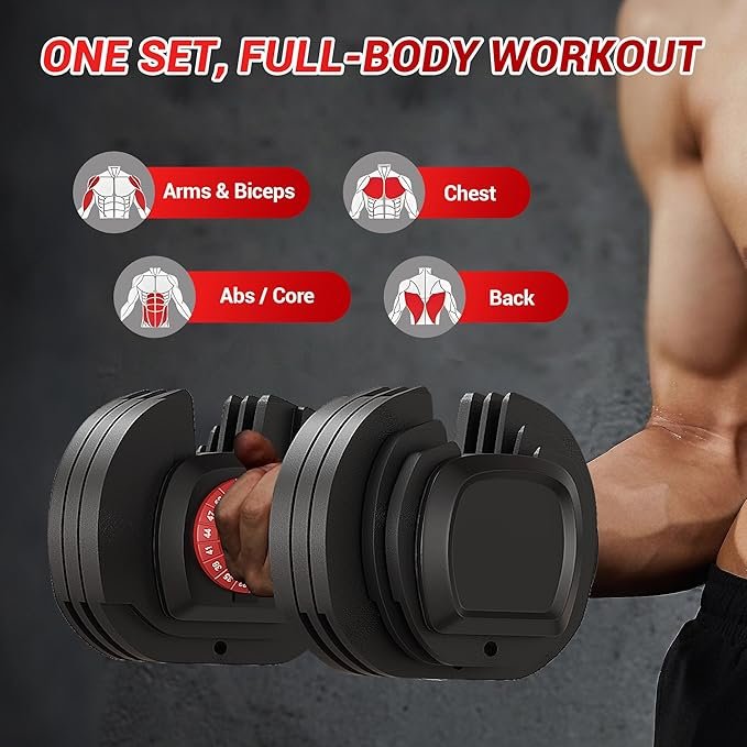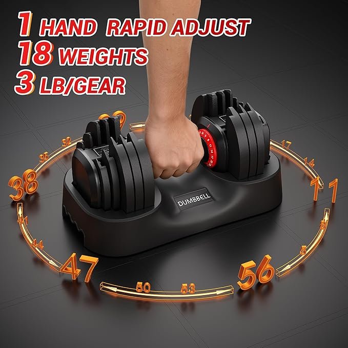 • 18-in-1 All in One Home Fitness Tool: Get 1 piece 56LBS adjustable dumbbell with 18 precise weight settings (5-56 lbs). It covers full-body workouts—arm curls, leg squats, chest presses, back rows, HIIT, and muscle-building. Suitable for all fitness levels, from beginners to pros, meeting diverse training needs without extra equipment, ideal for men and women.