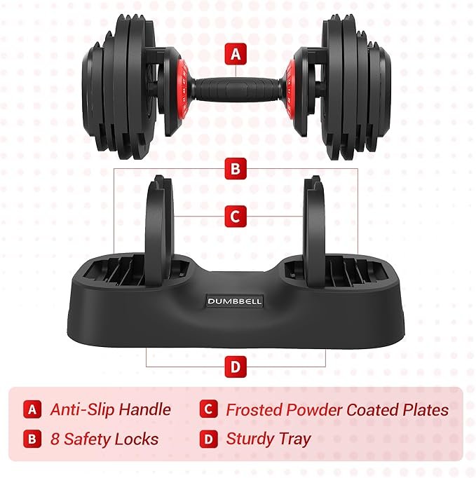 25LBS/56LBS Adjustable Dumbbell One-Hand Quick Adjust Weight Set, Anti-Slip Texture Handle, Full-Body Workout Equipment for Home Gym, Suitable for Men & Women