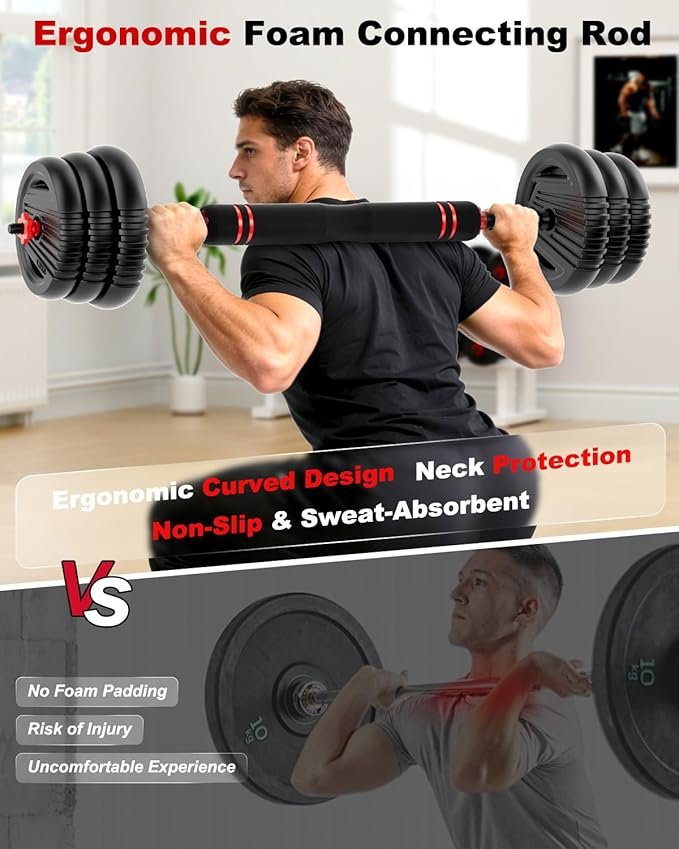 - Non-slip Dumbbell Bar:The surface of the dumbbell bar is made of ABS environmentally material and attached to a non-slip texture, which strengthens the friction of the hand and helps you control the dumbbell better during exercise