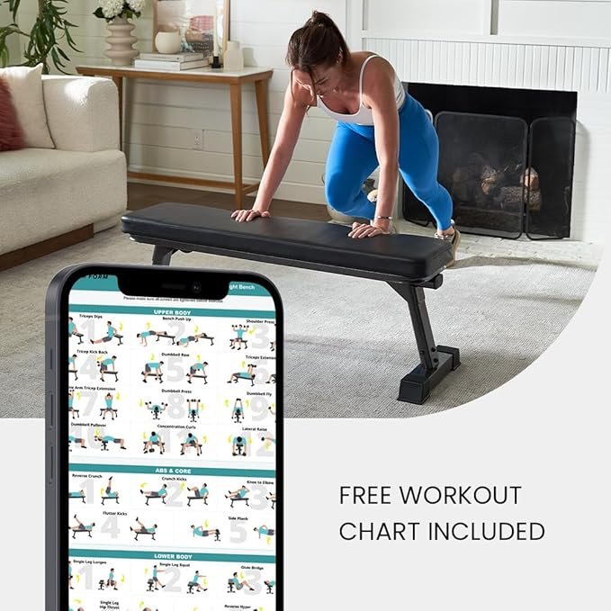 - Exercise Equipment Perfect for All Levels – Great flat bench weight bench for men, women, and teens. A durable gym bench for home workout, it combines portability with stability, perfect for foldable bench workout needs.