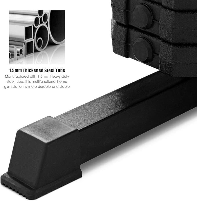 - High and Low Pulley System—This home gym has high and low pulleys that can be used for a wide variety of upper and lower body exercises. Total 12 pulleys provide a smooth fluid motion with every movement and strengthen various muscles throughout your back, arms and core.