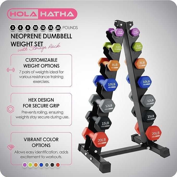 - Includes: Set includes (2) 3-pound, (2) 5-pound, (2) 8-pound, (2) 10-pound, (2) 12-pound, (2) 15-pound, and (2) 20-pound dumbbell weights for fitness enthusiasts of all levels for ultimate customization