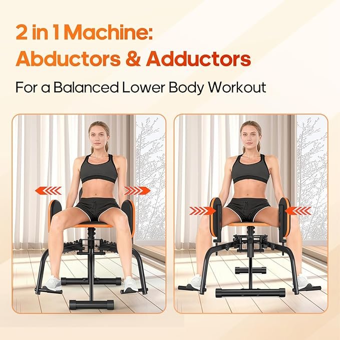 - 2-in-1 Dual-Function Design: Abduction & Adduction】 Move beyond single-mode trainers. Our hip machine integrates hip abduction and adduction into one compact unit. Featuring a 360-degree swivel seat and rotating leg pads, it lets you effortlessly switch between inner and outer thigh exercises. Target more muscle groups for complete hip development, joint stability, and balanced sculpting—all with a single, space-saving glute machine for home gym.